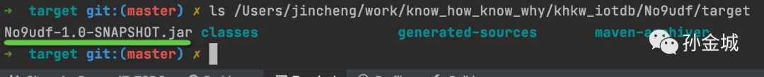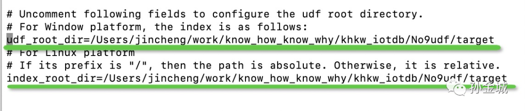 这是因为IoTDB配置udf的JAR加载需要指定JAR所在目录,我们利用 mvn clean package 生成JAR,然后再修改一下iotdb-engine.properties配置文件,如下: