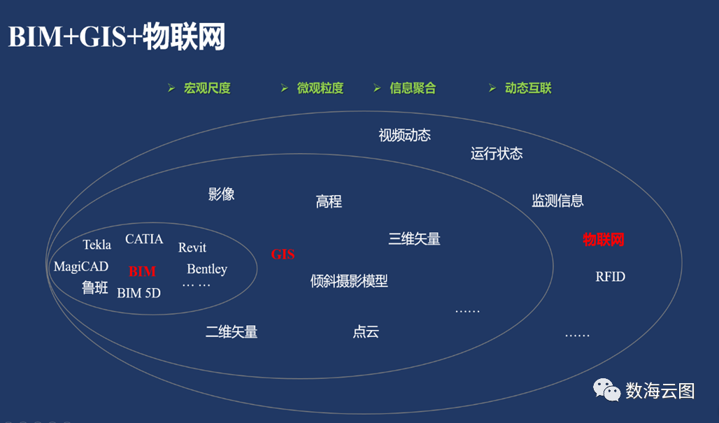 I (Information): 能容纳的信息是覆盖各种空间、时间维度的;能够支撑各种城市级别复杂度的应用。CIM中的信息能够描述城市内各种物理或人文实体,具有多时态、多类型、多粒度级别,多来源等特点。