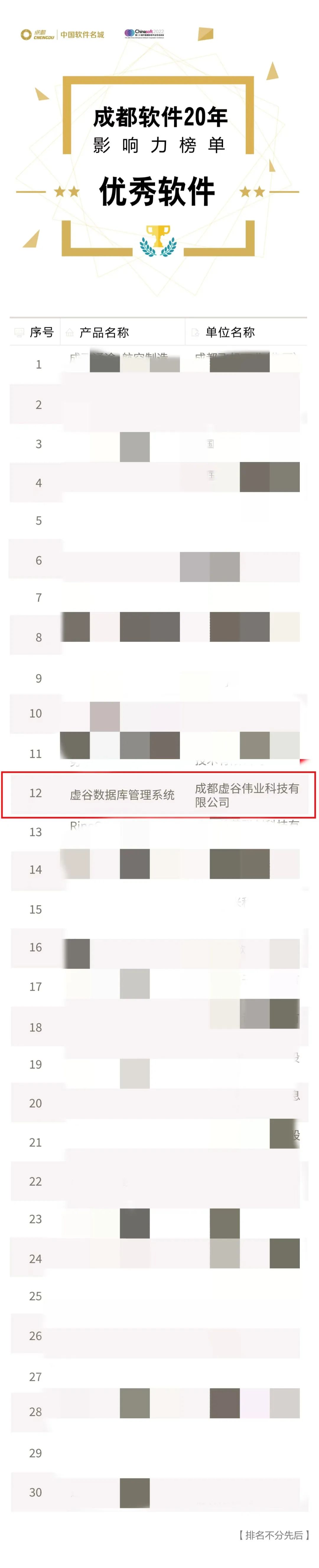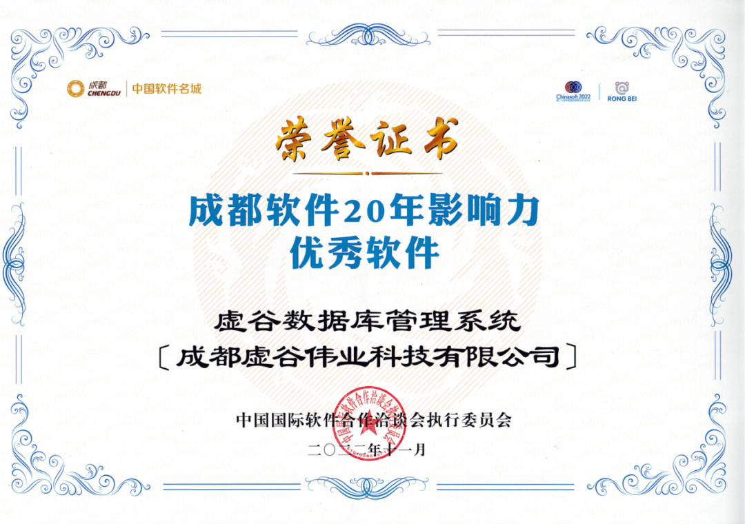 11月8日,以“新起点·新赛道·新方向”为主题的第二十届中国国际软件合作洽谈会将在成都世纪城国际会议中心举行。纵观成都软件产业的发展,始终贯穿了以国家战略为引领的发展脉络,历经“筑巢引凤”起步发展,“名城建设”优化环境,“高质量发展”建圈强链,成都软件从0到1,不断发展跃升。面对建设网络强国、数字中国的重大机遇和使命担当,成都正聚力擘画高端软件建圈强链“一大产业发展核心,五大产业发展集群”崭新蓝图,重点打造工业软件、基础软件、嵌入式软件、行业应用软件和新兴平台软件5个特色产业子链,高质量构建“关键技术+主要产品+新兴服务”产业体系。本次大会中发布了“成都软件20年影响力”各项榜单,包括产业园区、软件企业、优秀软件、合作伙伴、人才基地以及创新平台。其中在优秀软件榜单中,虚谷数据库光荣上榜。