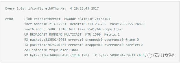 watch可以帮你监测一个命令的运行结果,省得你一遍遍的手动运行。在Linux下,watch是周期性的执行下个程序,并全屏显示执行结果。最后,除了上面提供的几种,还有很多种方式可以来看当前系统的网卡流量,我就不再一一复述了,上述方式如果不能满足你的需求,请自行google一下吧。 根据其易用性以及可读性,强烈推荐方法1和方法2