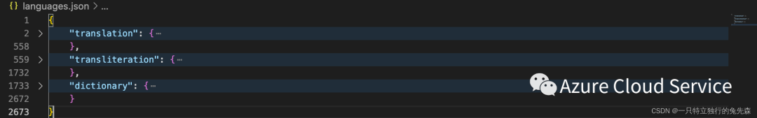 2.最终通过Azure Cognitive Services Translator 的API接口所获取到支持翻译的语言列表如下所示
