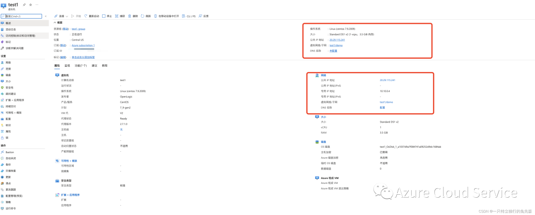 2.在网络接口配置中,虚拟网络配置为我们创建的虚拟网络“test1”,子网配置为我们在虚拟网络中的配置的子网