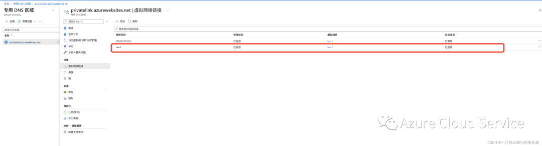 七.绑定添加专用DNS区域与test2虚拟网络链接