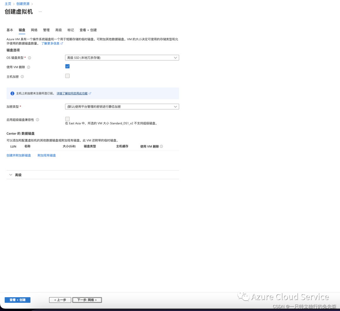 2.配置磁盘信息(配置相关磁盘类型及加密类型)具体配置如下所示: