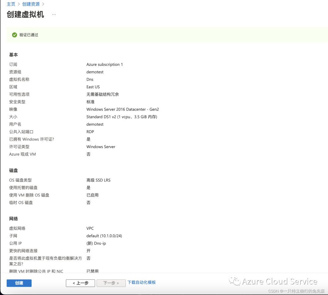 6.最终,我们配置完以上选项以后,对选择的配置进行验证操作,验证通过以后,我们点击“创建”