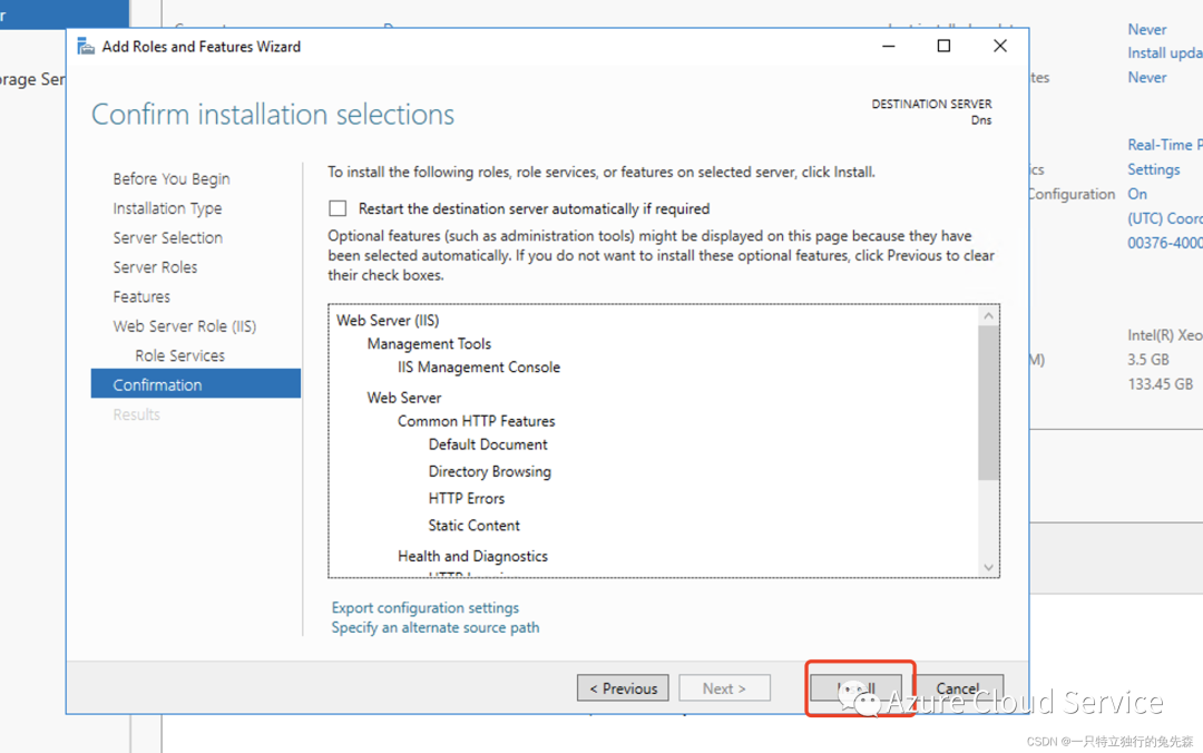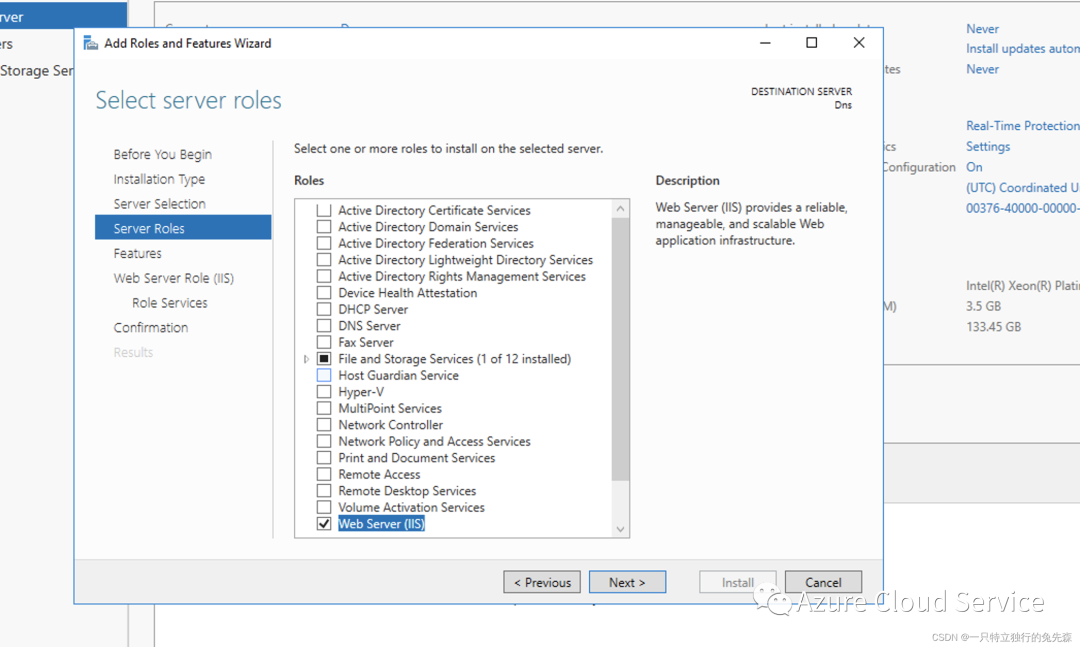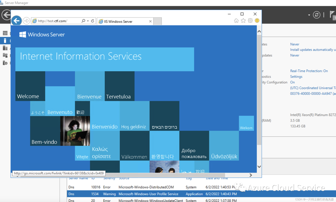4.接下来,我们在Azure VM中搭建一个IIS服务器去验证我们能否通过域名的方式访问到具体的web服务,搭建步骤具体如下图所示