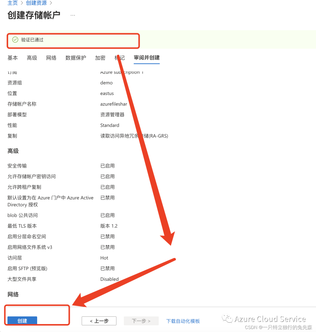 5.当审阅验证完毕以后,我们可以点击"创建”进行 资源的创建