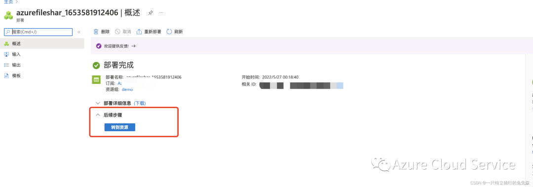 6.创建完毕以后,我们点击“转到资源”