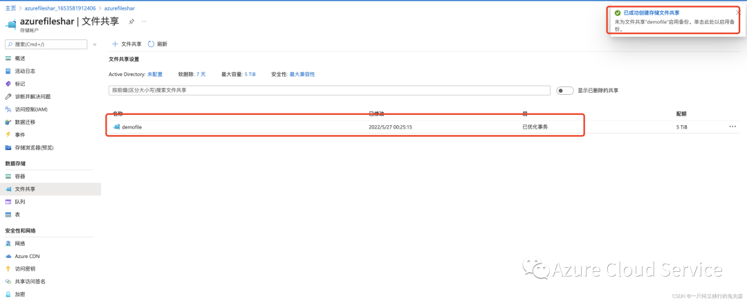 3.如下图所示,已成功创建了存储文件共享