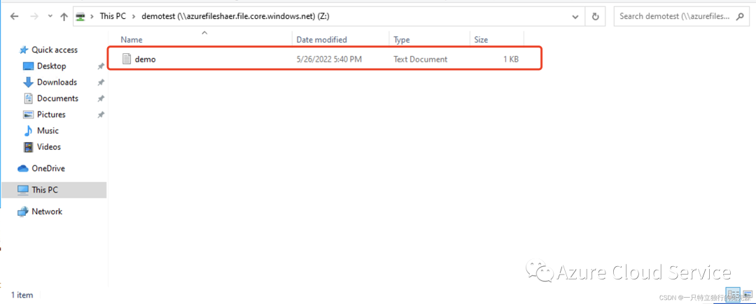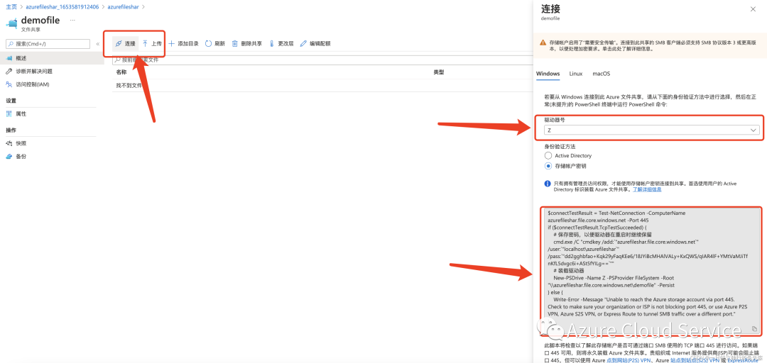 6.当出现下图所示时,表示已连接到 Azure 文件共享了