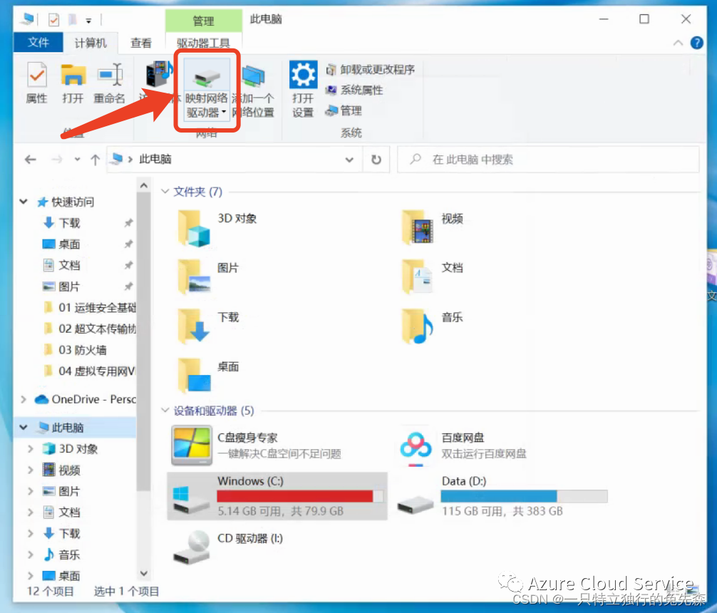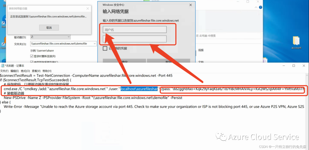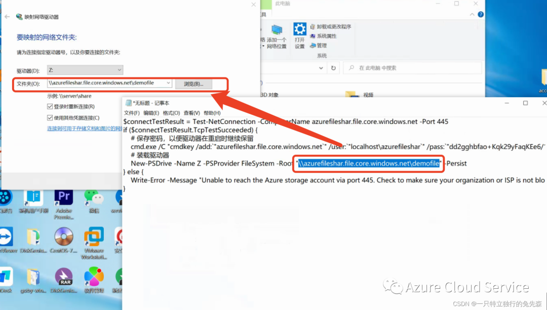 三. 使用文件资源管理器装载 Azure 文件共享