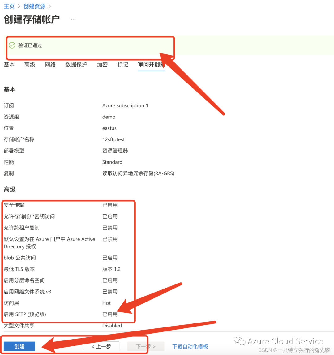 5.当审阅验证完毕以后,我们可以点击"创建”进行 资源的创建