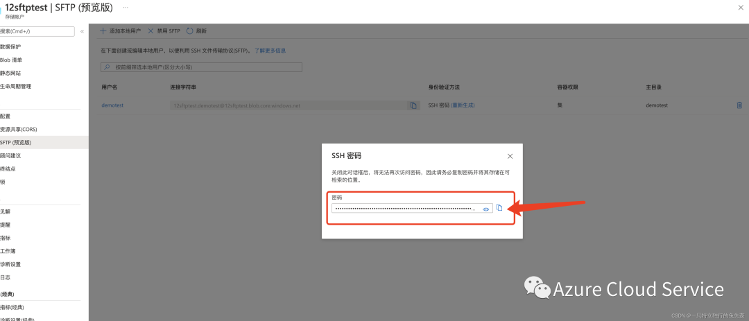 6.添加完毕以后,我们就可以看到我们用于SFTP连接的SSH密码,我们妥善保管好此SSH密码
