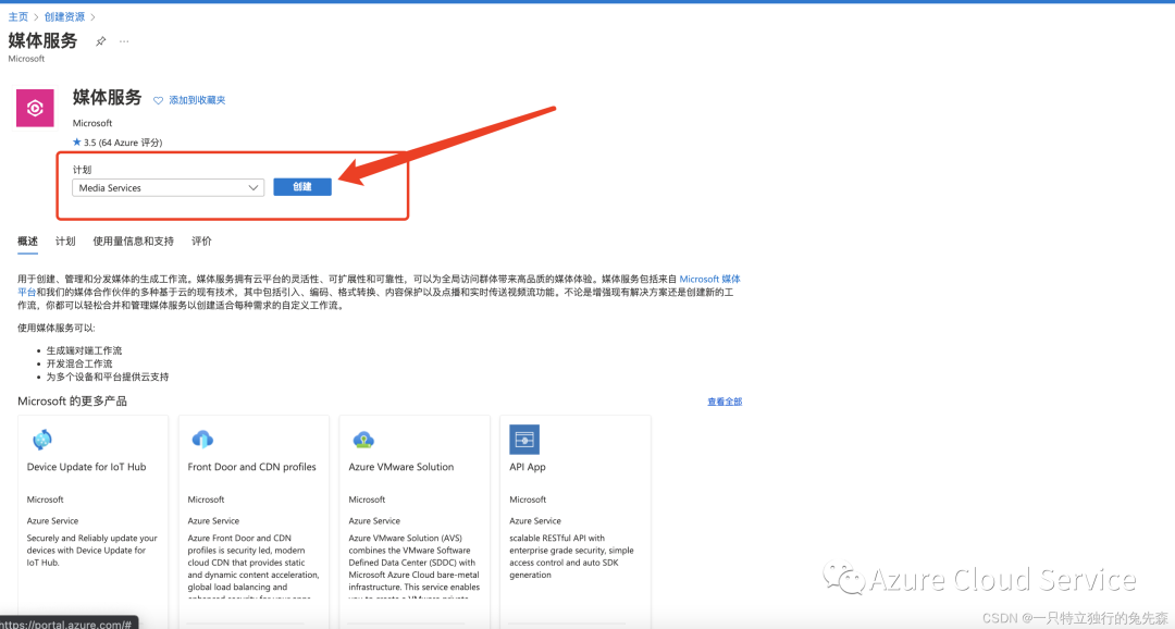 3.在“媒体服务”页面中,点击“创建”