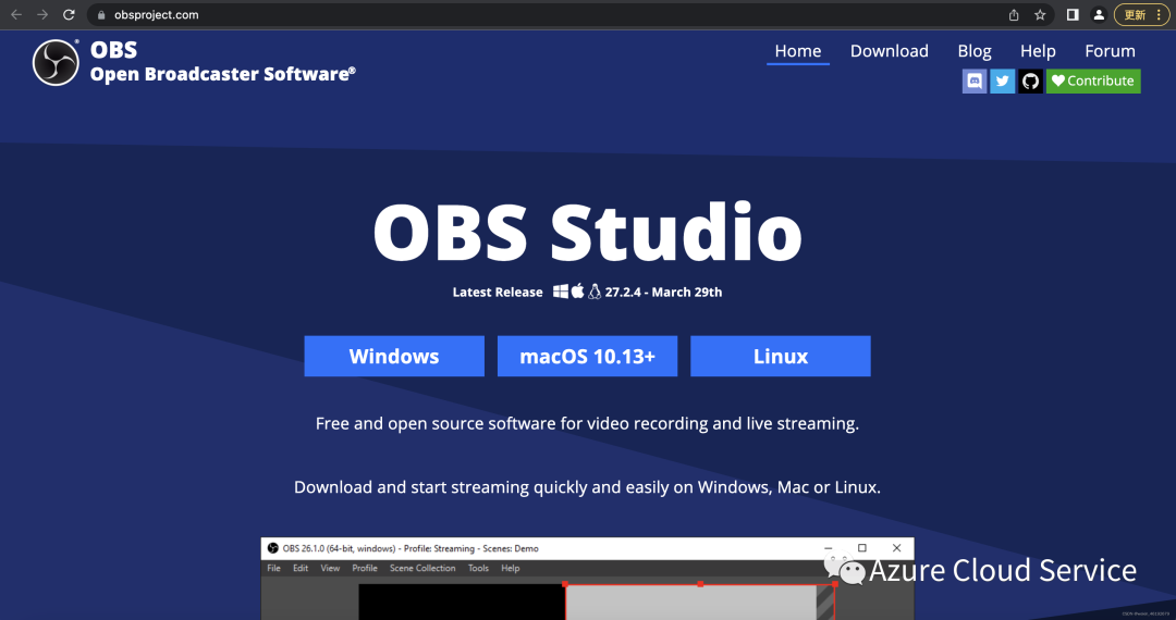 通过地址 https://obsproject.com/ 下载配置OBS (博主使用的Mac,因此下载的是macOS 10.13+)