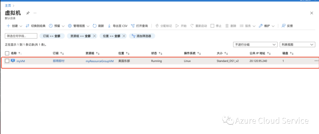 ③我们访问Azure门户找到VM虚拟机管理页面,点击名称进去查看详情