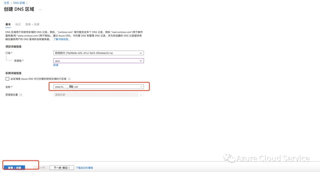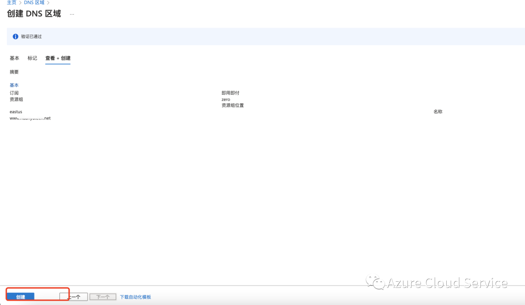 二.创建Azure DNS区域