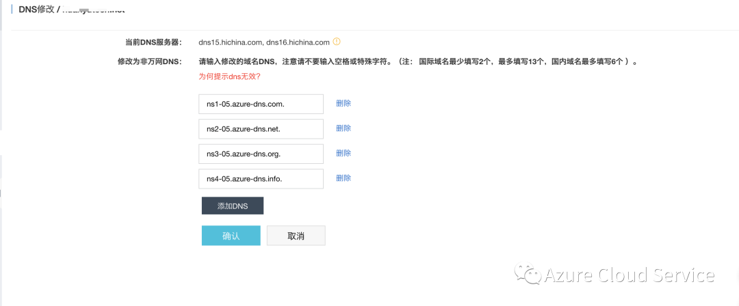 3.1 更换DNS为Azure DNS 名称服务器
