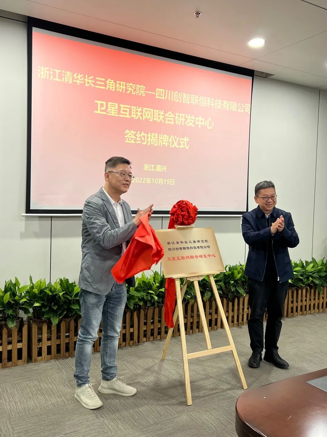近期,“浙江清华长三角研究院-四川创智联恒科技有限公司卫星互联网联合研发中心”签约仪式在浙江嘉兴顺利举行。浙江清华长三角研究院(以下简称“长三院”)院长黄开胜和创意信息技术股份有限公司高级副总裁、四川创智联恒科技有限公司(以下简称“创智联恒”)董事长杜广湘为联合研发中心揭牌,长三院副院长冯叶成和创智联恒总经理赵海鹏代表双方签署合作协议。