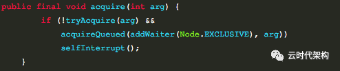 acquire()是AbstractQueuedSynchronizer中的方法,其源码如下: