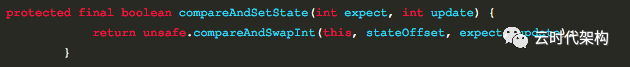 compareAndSwapInt() 是sun.misc.Unsafe类中的一个本地方法。对此,我们需要了解的是 compareAndSetState(expect, update) 是以原子的方式操作当前线程;若当前线程的状态为expect,则设置它的状态为update。