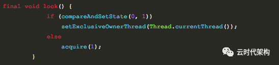 lock()通过compareAndSetState尝试设置所状态,若成功直接将锁的拥有者设置为当前线程(简单粗暴),否则调用acquire()尝试获取锁;