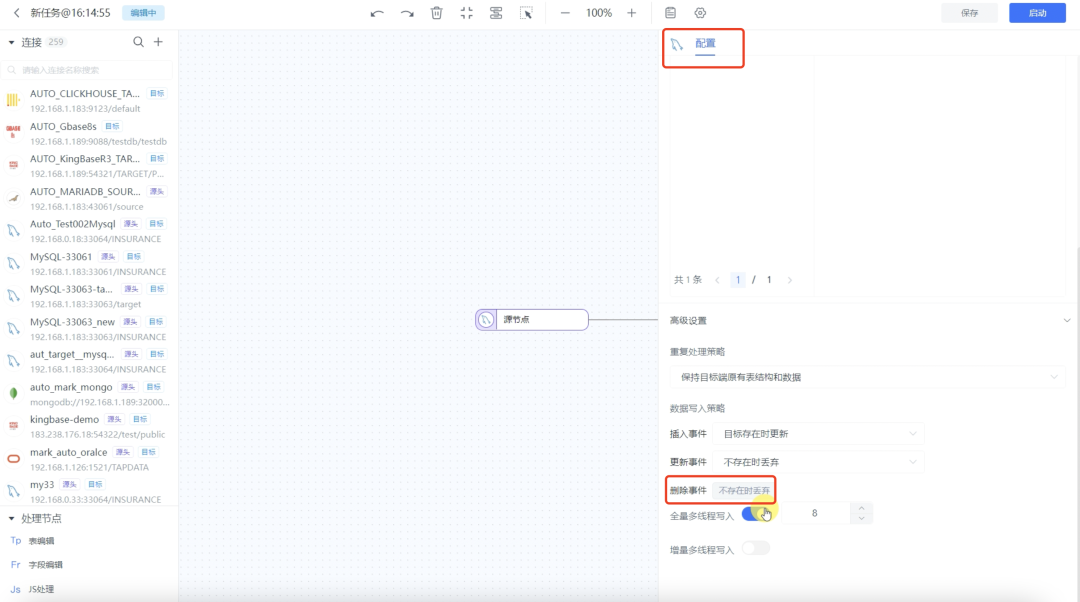 【全量多线程写入】:这里默认为8,可以根据服务器的性能选择合适的线程 【增量多线程写入】:默认为关闭,开启时可能会存在并发写入时的重复风险,需要根据数据库的实际情况进行选择