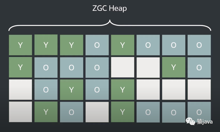 ZGC 和 G1 等垃圾回收器一样,也会将堆划分成很多的小分区,整个堆内存分区如下图: