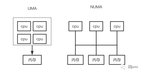 NUMA 和 UMA 比较如下图: