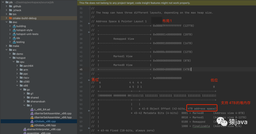 [0 ~ 41] 共 42-bits,对应 4TB 的 Java 堆内存;