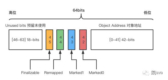 [42-45] 共 4-bits,对应 Metadata Bits,存放 Marked0,Marked1,Remapped,Finalizable 元数据;