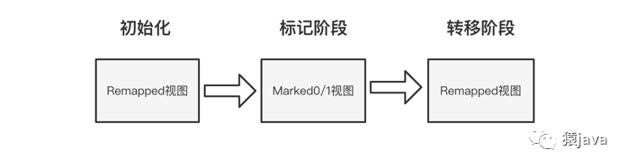 初始化阶段:ZGC 初始化之后,整个堆内存空间的地址视图被设置为 Remapped;