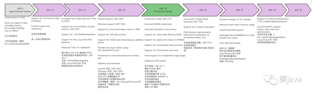 ZGC 随着 JDK 发展的更改日志如下: