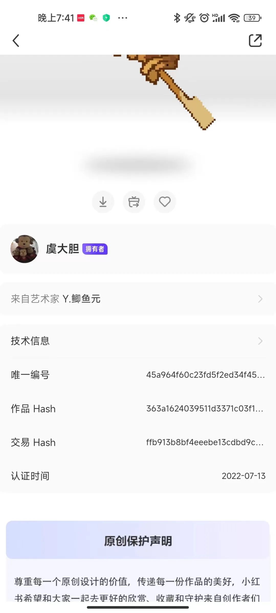 在小红书上,艺术家可以上传自己的数字藏品,审核通过后,就可以售卖,买家选择购入后,会形成相应的凭据。介绍信息:https://www.xiaohongshu.com/picasso_pages/eevee/rspaceguide?id=rspaceguide