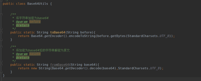 jdk的工具包中就自带base64的工具类,使用base64的方法也非常简单,先新建一个工具类: