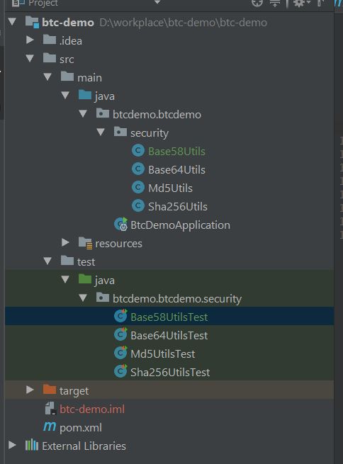 新建一个Base58的工具类,目录结构如下:
