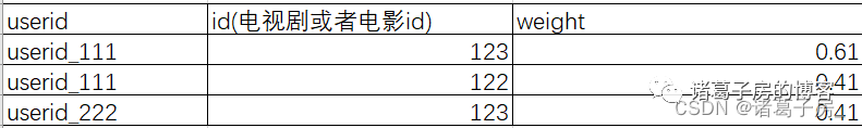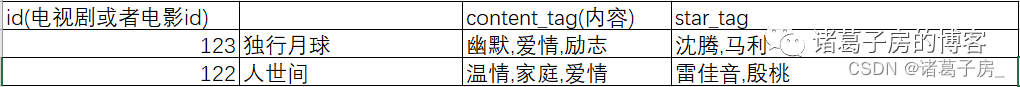 根据上述两张表可以生成如下用户观影tag表,能看到一个电视剧或者电影能很明显的