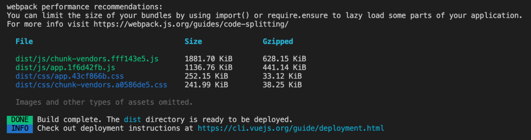打包效果:之前的一个文件被拆分成了多个文件,文件大小明显减小