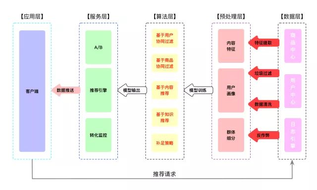 推荐投放:推荐统一接口,负责召回规则、abtest、埋点、字段补全。