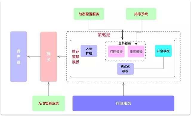 系统分成推荐投放系统、排序系统、推荐引擎、abtest、字段补全服务等。