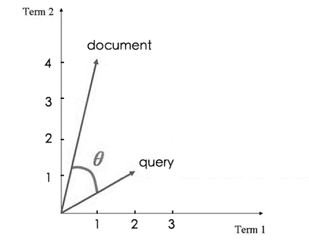 根据每个Term在每个文本中出现的次数,我们可以把文本信息映射到空间向量中,形成文本信息和向量数据的映射关系,也就是根据两个文档query和document生成query(以下简称q)和document(以下简称d)这两个向量,而向量q和向量d之间的夹角描述了它们之间的相似度,夹角越小就越相似,如果q和d完全相同,则其夹角为0。
