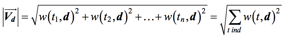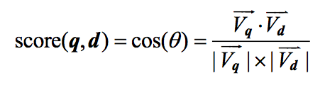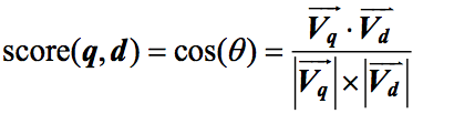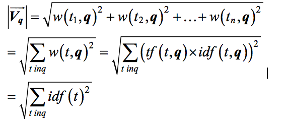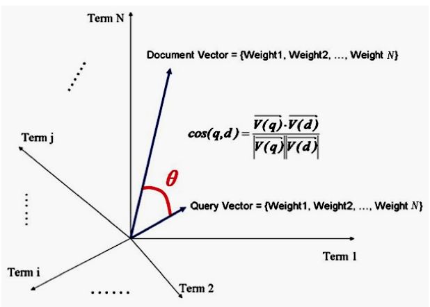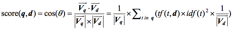 Vq﹒Vd= tf(t1, d)×idf(t1)×idf(t1)+ …… + tf(tn, d)×idf(tn)×idf(tn)