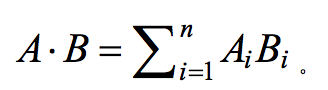 向量的点积就是将两个向量中的各个元素相乘再相加,即