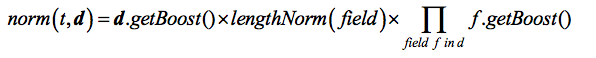 document boost:文档的权重,在创建索引时设置某些文档比其他文档更重要。比如我国某大型搜索引擎网站可以将其域名下网站的boost值设置得比其他网站的大一些,当有查询过来时,其域名下的网站就会有更好的排名。