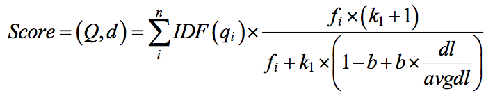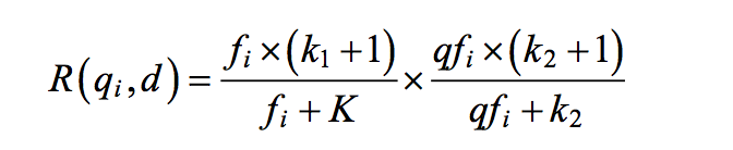 fi表示第i个词在文档中出现的次数(类似于空间向量模型里的TF),qfi表示第i个词在查询语句出现的次数。