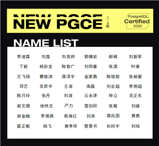 PostgreSQL初、中、高级认证考试(2021.11.20)通过考生公示