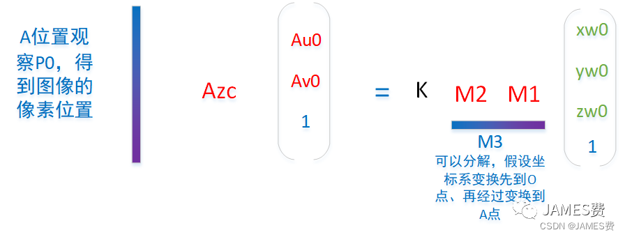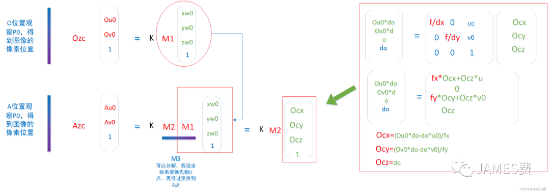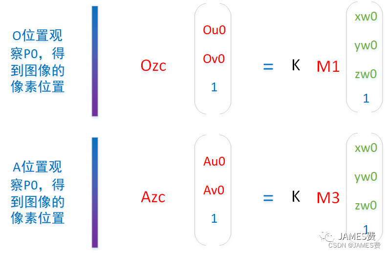 到此,我们可以大概看出,要解决本篇的目标(求M2),是可以通过观察比较两个位置的图像上的成像点的像素坐标,经过一些列计算得到的。