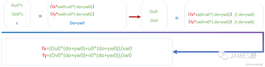 经过推导可得到如下算式(令fx=f/dx,fy=f/dy):