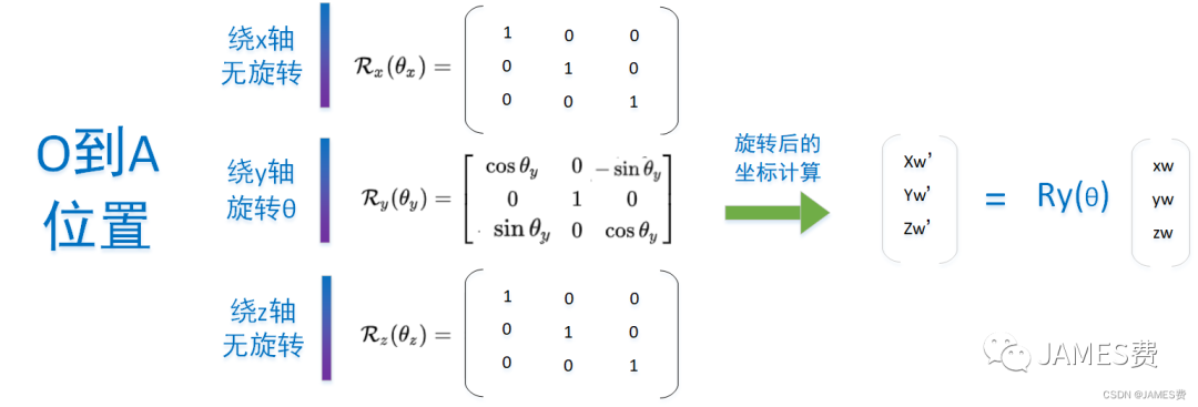 O到A运动,涉及的旋转矩阵其实只有一个Ry(θ)