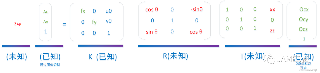 通过以上方程,可知K里面有3个未知数,那么其实可以带入已知的2个点P0,P1获取图像的像素点坐标,就可以解出内参的数值。这其实也是简化的相机标定原理!